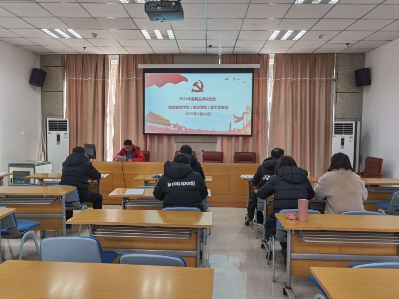 2月24日下午,继培学院教工党支部在志仁楼116教室开展2021年度民主评议党员工作。