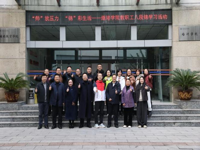为强健体魄教职工、缓解工作压力,11月24日下午,继续教育学院(培训学院)组织开展以“‘师’放压力 ‘锦’彩生活”为主题的八段锦学习活动。