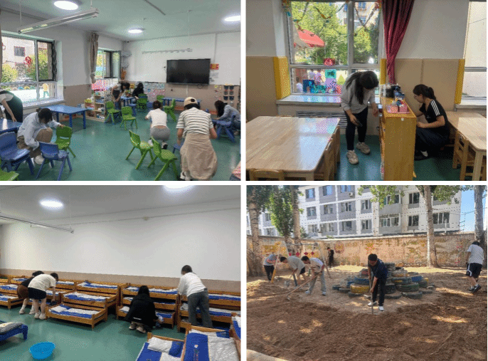 活动伊始,学员们分工明确,迅速投身劳动,手持工具清扫园区、整理杂物。劳动过程中,大家热情高涨、干劲十足,用实际行动诠释担当与奉献,忙碌的身影成为幼儿园里一道青春风景线。