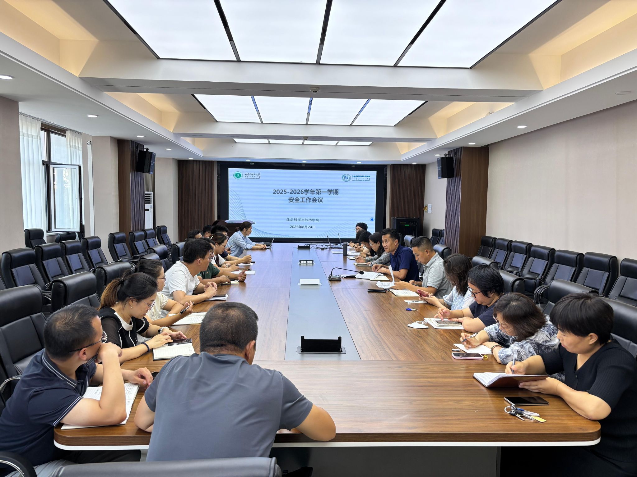 为扎实推进新学期安全工作,强化责任意识,8月24日下午,beat365在线唯一官网召开2025-2026学年第一学期安全工作会议,全体院领导、各系主任、实验中心主任、学工办主任,团总支负责人、教务办相关人员、实验员参加会议。