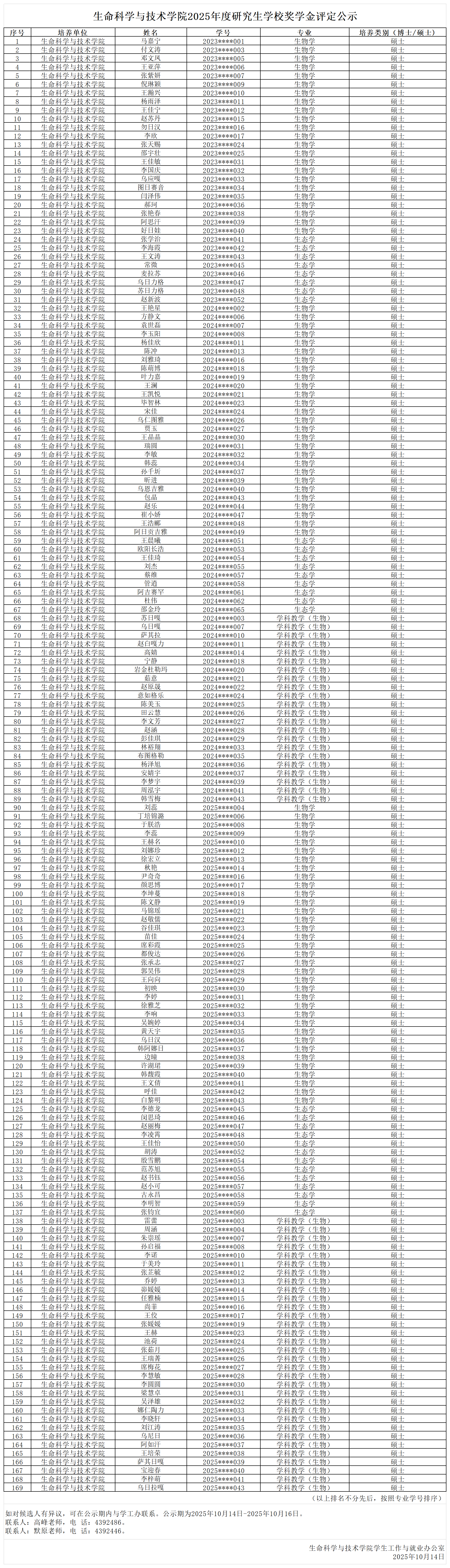 beat365在线唯一官网2025年度研究生学校奖学金评定公示